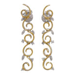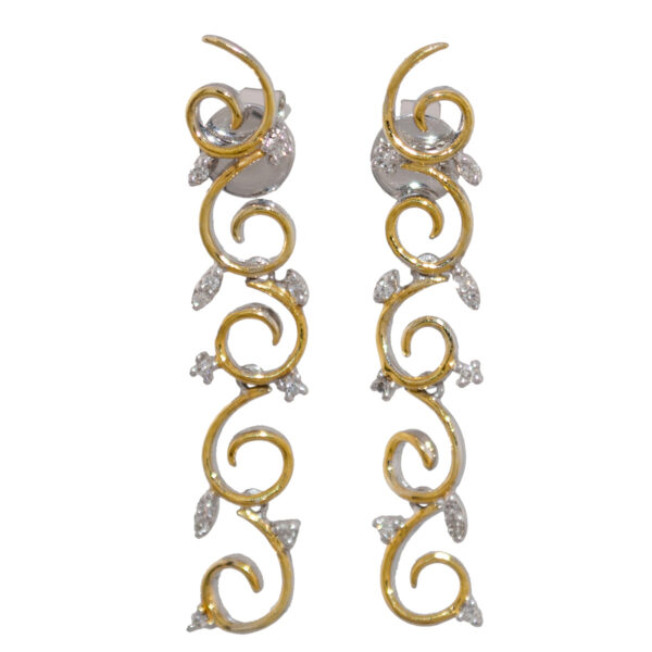 Yellow and White gold Swirl Diamonds Drop studs 7M50-18DER