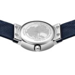 featuring round shape Stainless Steel case with Blue Mother Of Pearl dial and Swarovski Crystal indicator on an IP Blue Milanese Stainless Steel Mesh bracelet and sapphire crystal