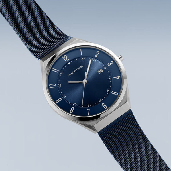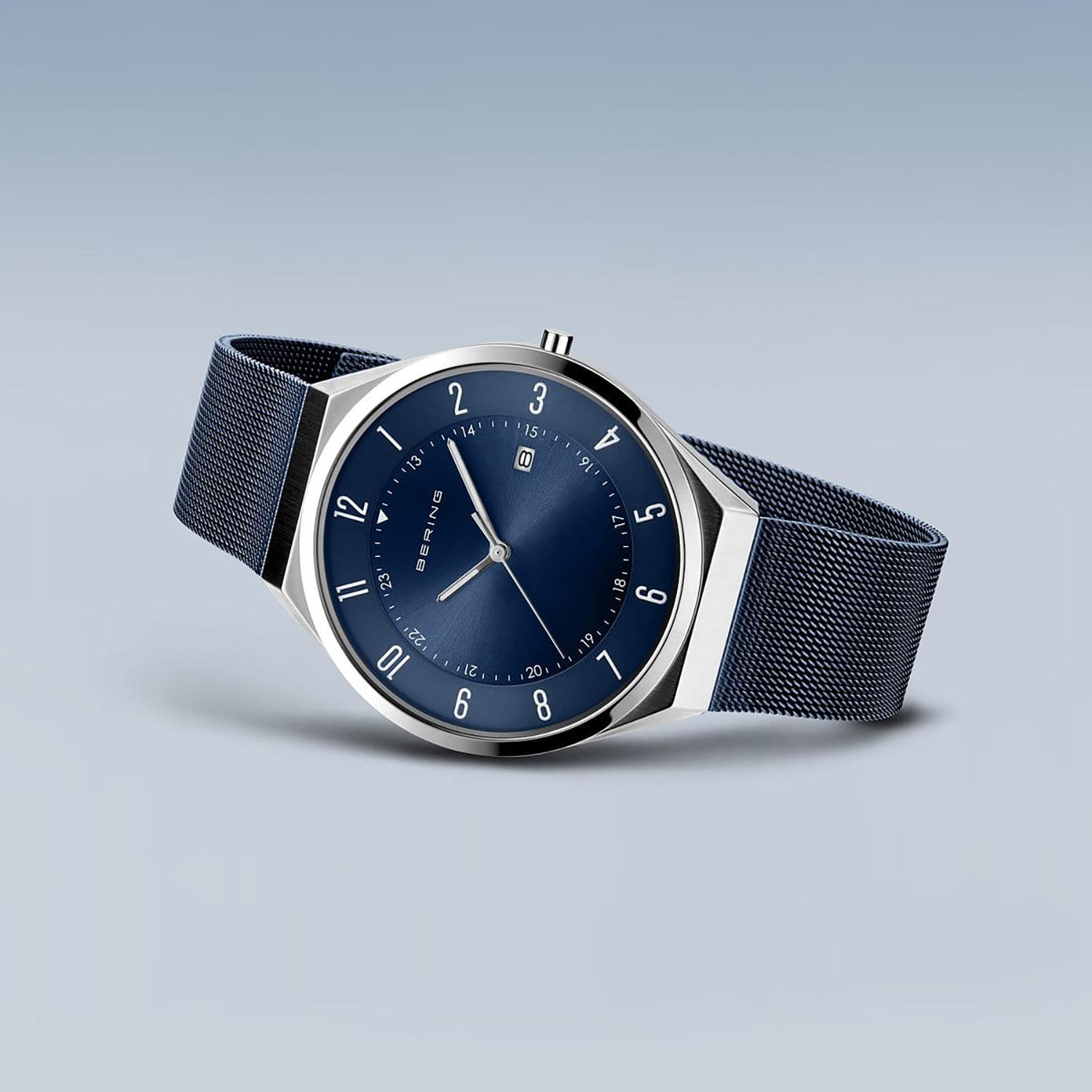 The Classic Collection, Bering Gents Watches Features Ultra Slim Design round shape Stainless Steel case with Blue dial and sapphire crystal, on Milanese Stainless Steel Mesh Bracelet