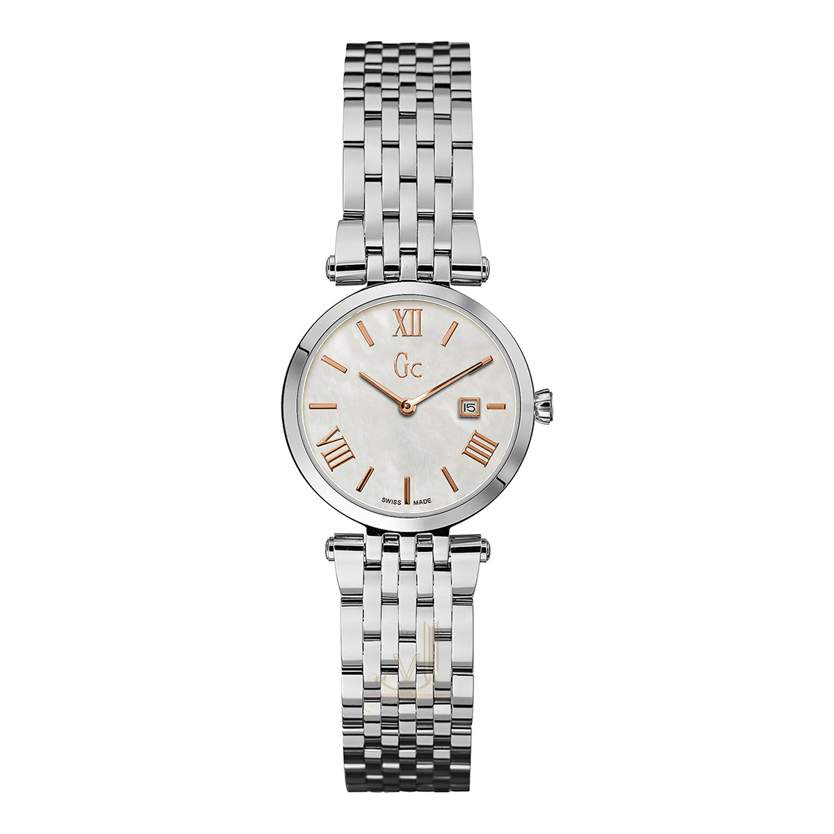 featuring round shape Stainless Steel case with mother of pearl dial, Stainless Steel bracelet with Two Side Pusher Deployment Buckle plus Sapphire Crystal