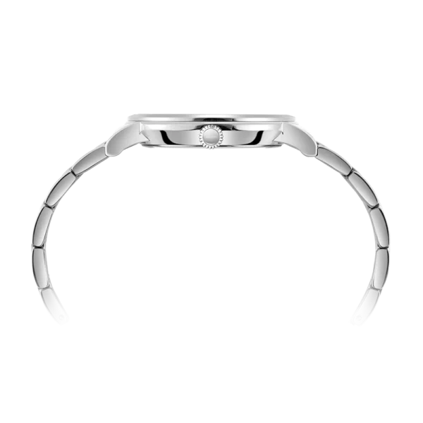Strap/Bracelet: intricate Stainless Steel 7 link bracelet is secured with a deployment clasp