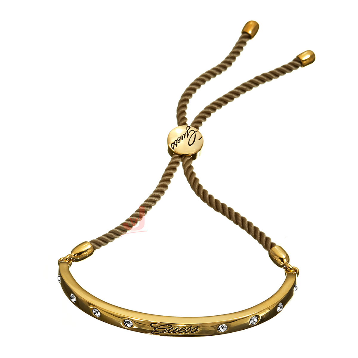 Stylish GUESS Bracelet with Gold coloured Material Cord slipknot and Gold Plated with sparkling crystal, It is the ideal combination of pretty and sassy and makes an ideal gift for a special occasion