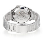 The clear exhibition case back within each design showcases the beauty of the automatic watch movement, created by Seiko Watch Corporation – experts in watchmaking since 1881. This watch features a dark green dial with contrasting luminous hands and markers. Day/date window. 100 metre water resistant. Brushed & polished finish Dark blue sunray dial with contrasting light green semi luminous Hands/Markers