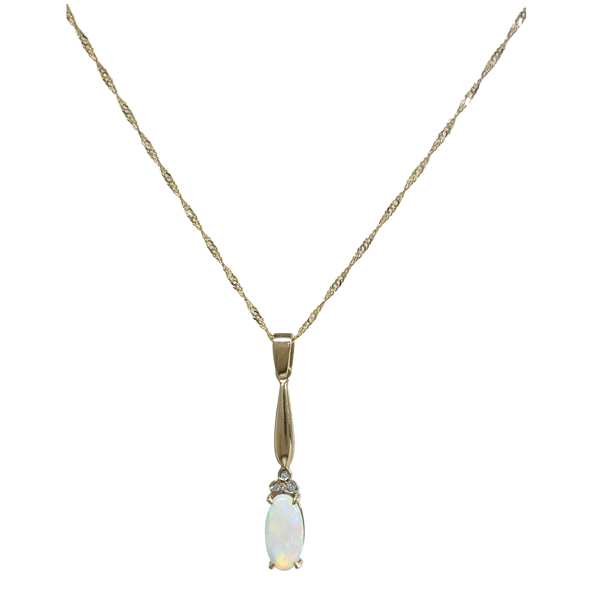 Diamonds & Opal Pendant set in 9ct Yellow Gold drop with 9ct yellow gold Twisted curb chain.