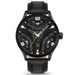 All eyes are on the unique, multilayered dial design of the WAIMEA timepiece! Featuring a 3 hand date movement, IP gun case, matte black dial, and complementing black textured leather strap