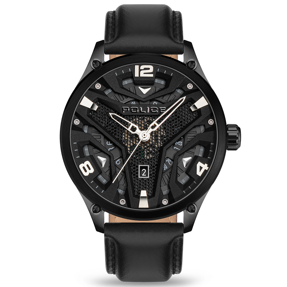 Police Black leather Strap Waimea Watch PEWJB2203040