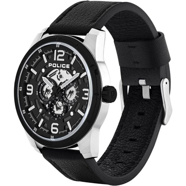 POLICE Lawrence Watch with Black Leather Strap and Black Dial