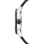 featuring a Round shape, Black bezel, Stainless Steel Case, Black Dial, Black Leather Strap