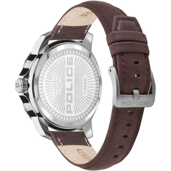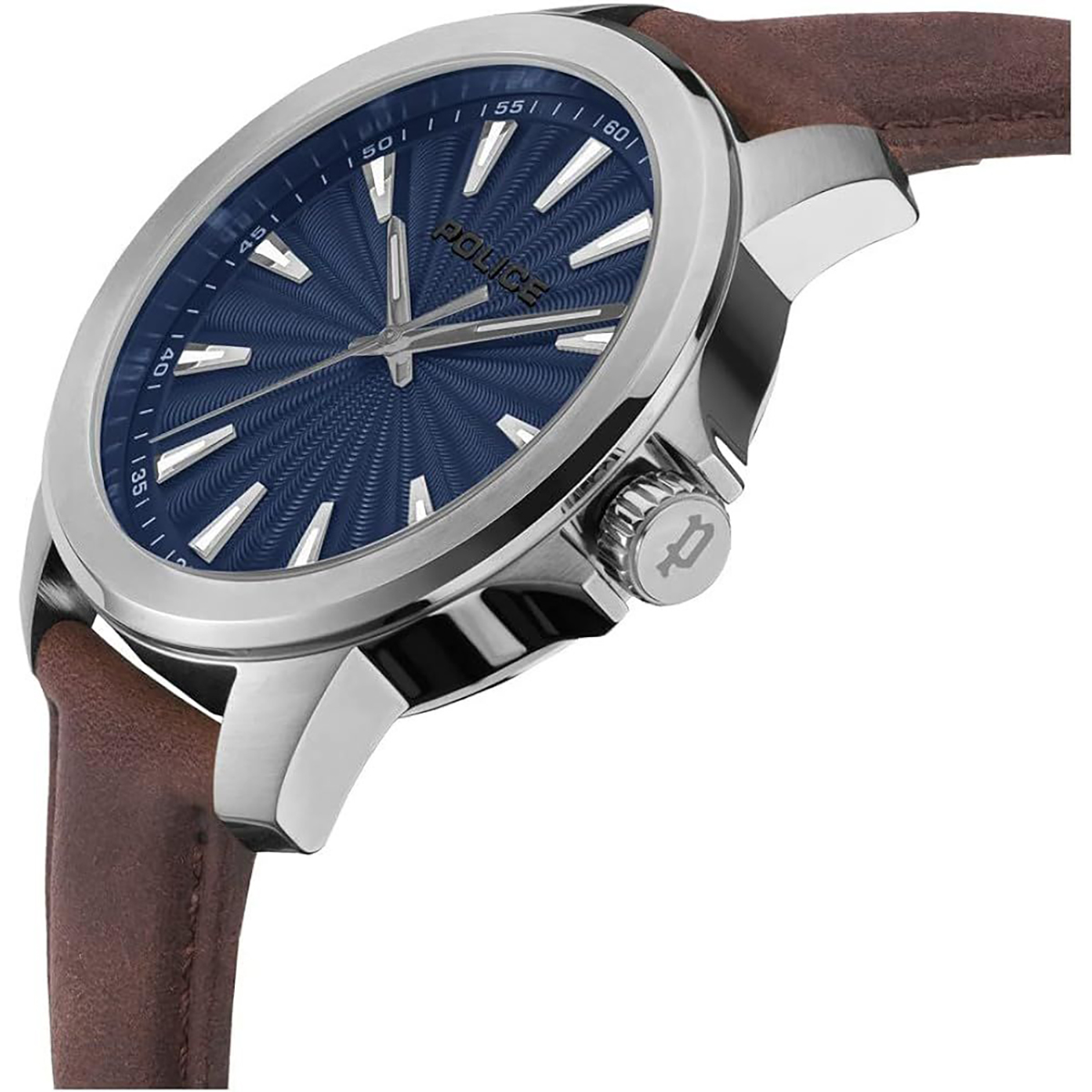Minimalism for the modern man, MENSOR features a Brown leather strap set with a simple 44mm steel case and a clean Blue textured dial