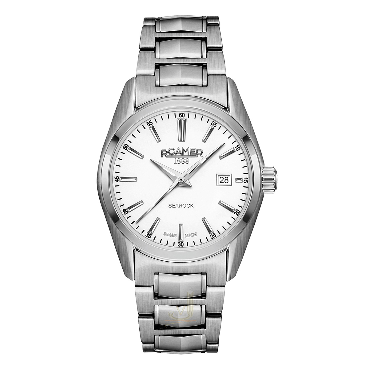 Roamer of Switzerland Classic Range Ladies watch featuring steel case with date a black dial and genuine black leather strap anti-reflection glass
