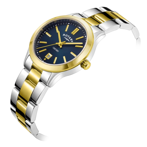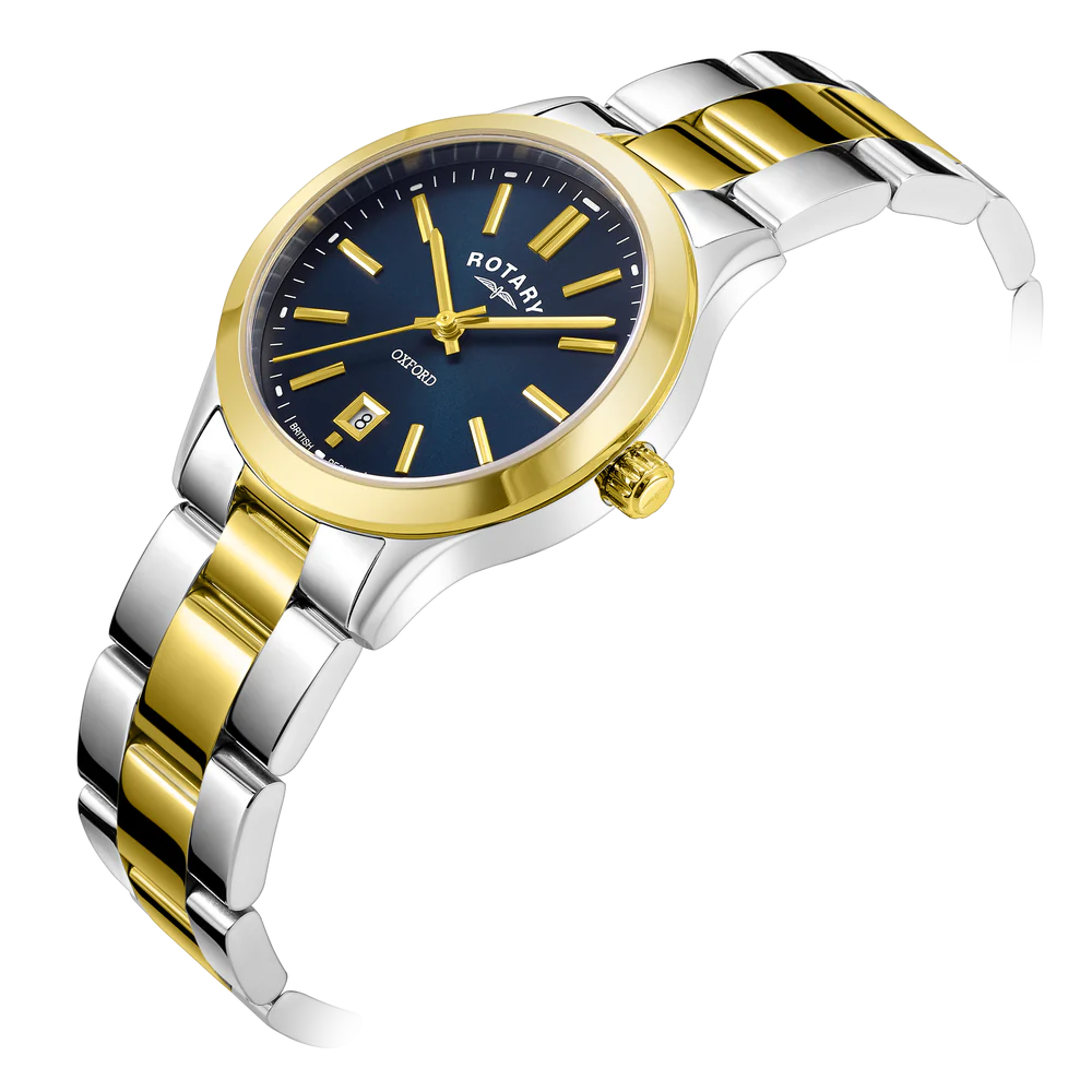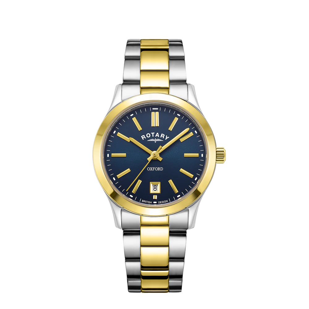 Featuring a 30mm two-tone gold PVD stainless steel case, blue sunray dial with gold accenting and stainless steel two-tone gold PVD bracelet, this Rotary Contemporary delivers timeless class. 50m of water resistance and a date at 6 add practicality to this premium design.