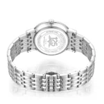 featuers: round stainless steel 37mm case, stainless steel bracelet, sapphire glass silver dial Water-resistant up to 50m, quartz movement. The running second hand at 6 o’clock