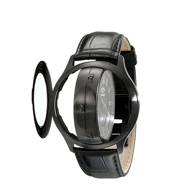 The Revelation houses two Swiss made watches in one case. Two time-zones, two looks. Change up your time-zone or style by simply rotating the case, revealing the other dial, as well as the hidden crowns. The two Swiss quartz movements allow for precision time-telling in up to two time-zones. Seamless synchronization between the two watches is easy with the crowns on the Revelation, which, thanks to their hidden design, are designed with both ergonomics and aesthetics in mind. With precise movements and a classic design, you can rely on the Revelation for a timeless touch to any look.